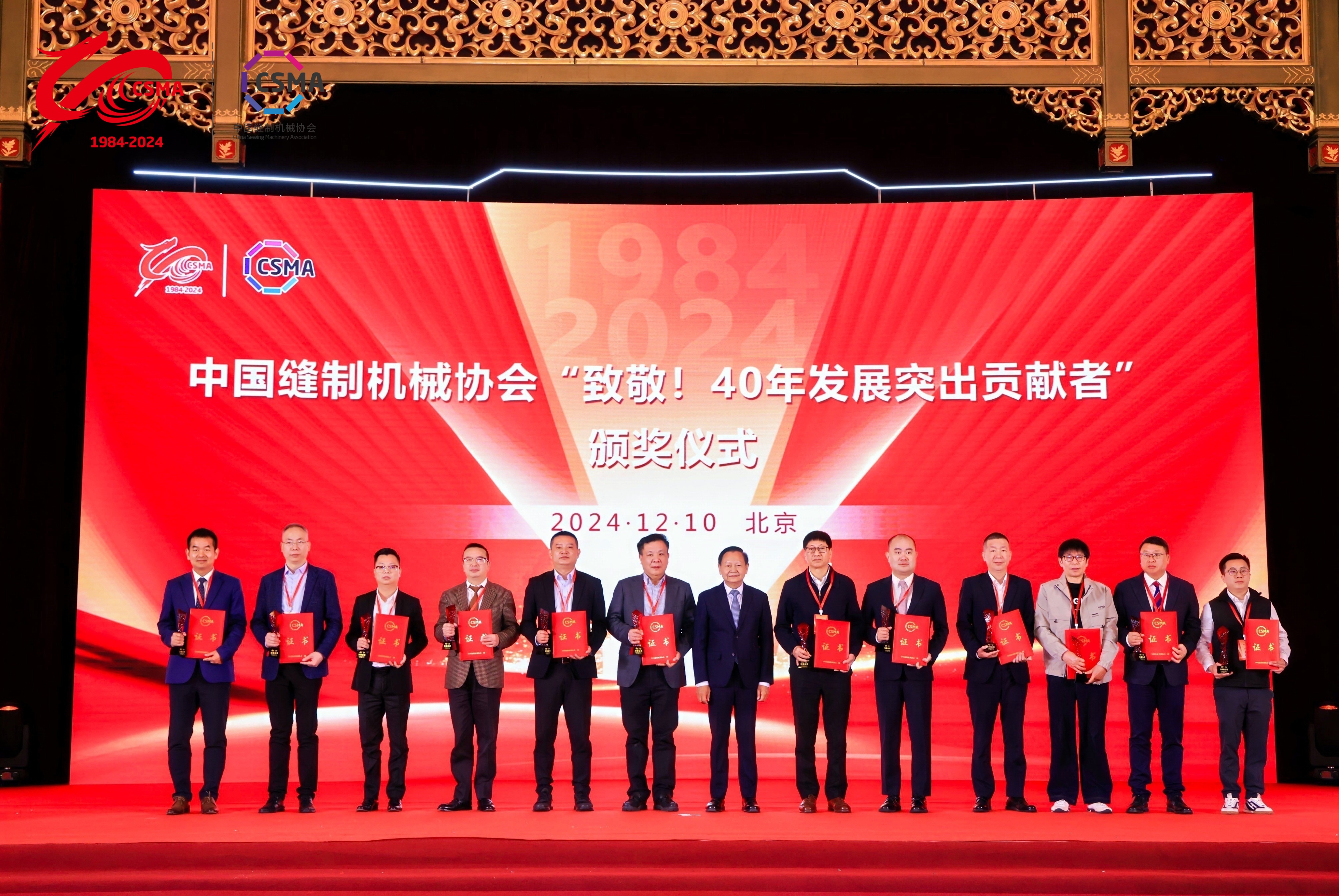 會(huì )議舉行了中國縫制機械協(xié)會(huì )“致敬!40年發(fā)展突出貢獻者”頒獎儀式,對12家中國縫制機械協(xié)會(huì )功勛會(huì )員、33家先進(jìn)會(huì )員、12家榮譽(yù)會(huì )員、36位先進(jìn)個(gè)人進(jìn)行了表彰和頒獎。大豪科技榮獲“功勛企業(yè)”稱(chēng)號??偨?jīng)理茹水強榮獲“先進(jìn)個(gè)人”稱(chēng)號,并代表獲獎企業(yè)致辭。
